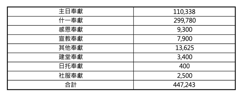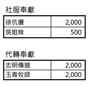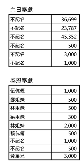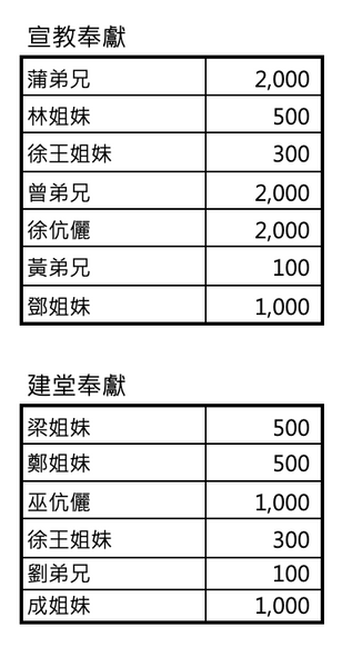 思恩堂美福教會9/1-9/7 奉獻徵信